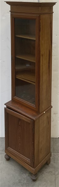 Fuciliera in legno con anta riquadrata nella parte inferiore, anta a vetri in quella superiore (cm 54x210x36) (difetti)