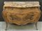 Comò bombato con fronte a due cassetti e mezzo decorato con sagomette in riliev