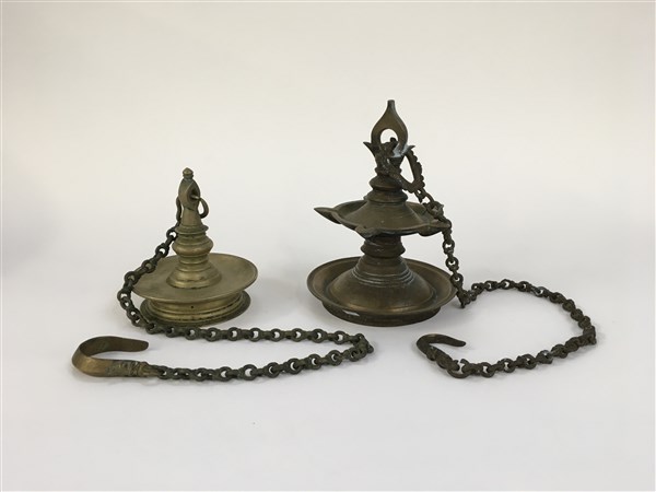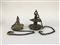 Lotto di due lampade a olio in ottone, Medio Oriente, secolo XIX (h max cm 20) (difetti)