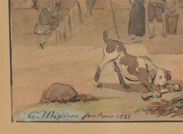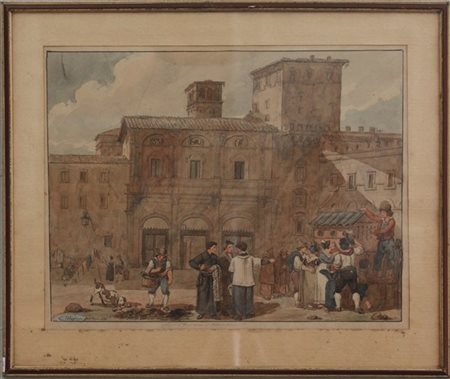 Maestro romano del XIX Secolo "Chiera di San Marco annessa al Palazzo di Venezia" acquerello su carta (cm 40x52) Reca iscrizione G.Migliara fece Roma 1883 in basso a sinistra. In cornice (difetti)