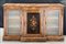 Credenza a tre ante lastronata in radica e intarsiata a motivi floreali. Ante laterali a vetri, quella centrale aggettante con riquadro intarsiato con grande composizione di fiori. Fregi sui montanti in bronzo dorato (cm 184x107x37) (lievi difetti)