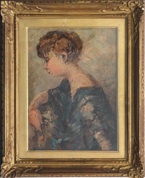 Ignoto "Ritratto" olio su compensato (cm 41x29.5) Reca sigla in basso a sinistra. Al retro: iscrizione. In cornice