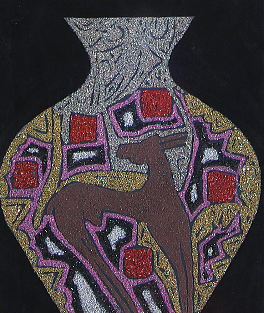 HASSAN FATHI Il Cairo (Egitto) 1957  Contenitore di luce, 2009 tecnica mista su tavola cm. 27x23, firma e anno al retro, dichiarazione d'autenticità dell'artista su foto.