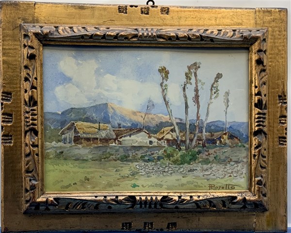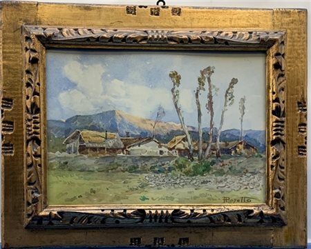 Pasetto Antonio (Schio 1878 - Cadegliano 1947) "Vecchie Case in Val Leogra" 1924, acquerello su cartone (cm 38x28)