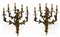 Coppia di applique in bronzo dorato a cinque fiamme con decoro a motivo fogliac