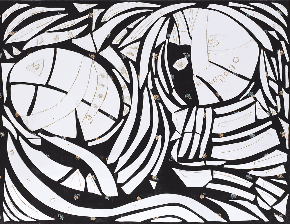 ENRICO BAJ Milano 31/10/1924 - Varese 15/06/2003 Specchio, 1974 multiplo di specchi e passamanerie su velluto applicato su tavola cm. 120x150, firma sulla destra, esemplare 3/10, firma e tiratura dell'artista su etichetta al retro.