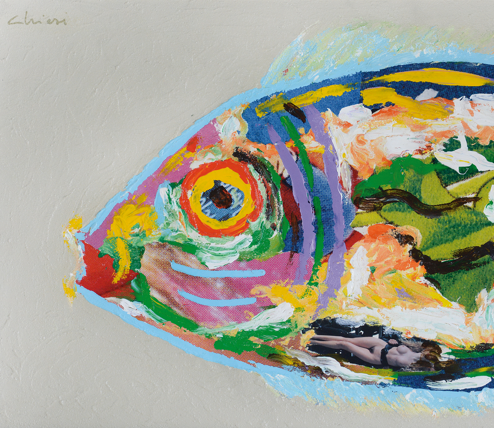 GIORGIO CHIESI Felina (Re) 27/02/1941 Pesce tecnica mista e collage su tela...