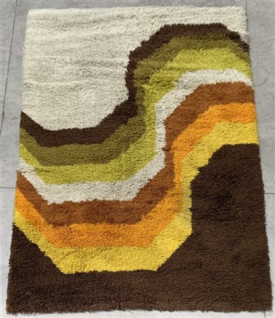 Tappeto in lana, lavorazione meccanica, Italia, anni '50. Decoro con motivi geo