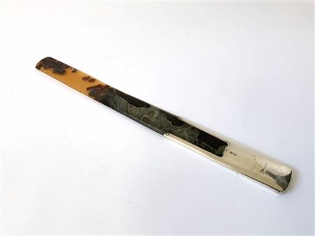 Grande taliacarte in tartaruga montato in argento. Punzoni di Londra, secolo I (l. cm 42) (difetti)