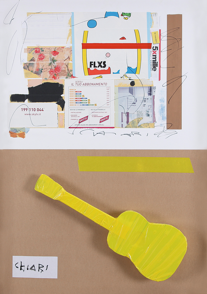 GIUSEPPE CHIARI Firenze 26/09/1926 - Firenze 10/05/2007 Senza titolo tecnica mista e collage su tavola cm. 100x70, firma in basso al centro e in basso a sinistra, dichiarazione d'autenticità datata 2001 e timbro della Galleria Armanda Gori Arte su foto.