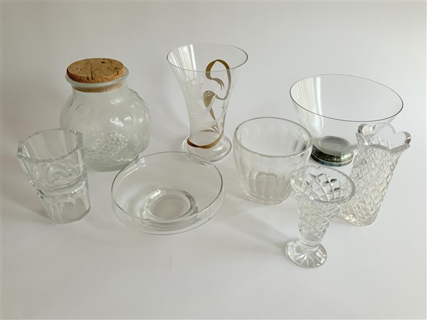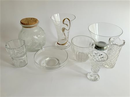 Cartone contenente vasi e centrotavola in vetro e cristallo (difetti)