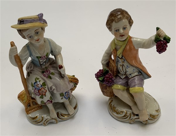 Manifattura del secolo XX, coppia di figurine in porcellana policroma raffigura