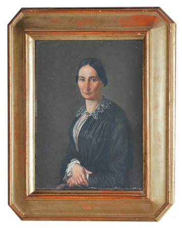 Ignoto del XIX Secolo "Ritratto di Maria Fraschini" olio su cartone (cm 37x28) In cornice (difetti)