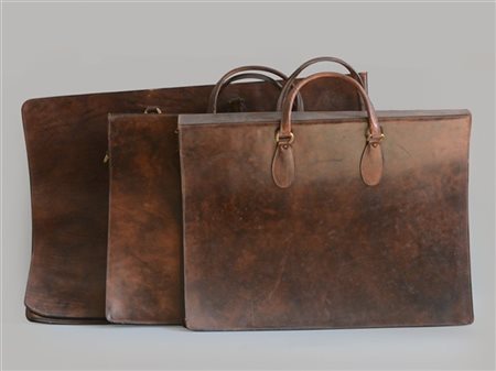 Lotto di tre cartelle portadisegni in pelle (difetti)