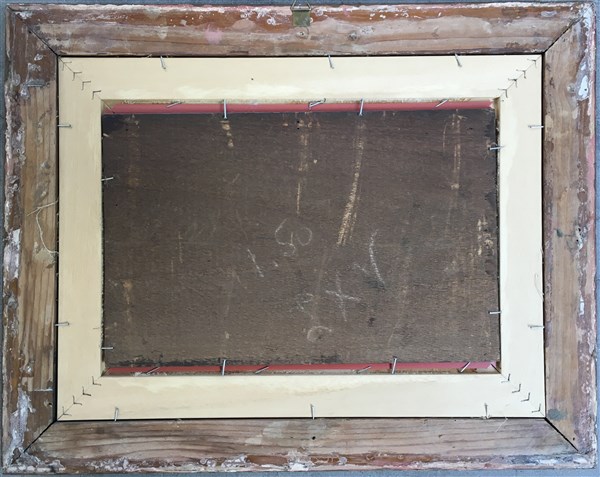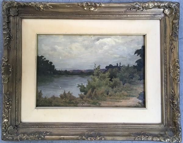 Ignoto "Paesaggio lacustre" olio su compensato (cm 21x32,5), in cornice