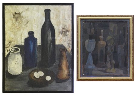 Lotto composto da due dipinti a olio su tela, raffiguranti nature morte, di mis