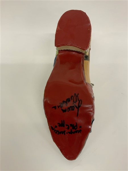 Firma indecifrata "Philippe" Scarpa-scultura in resina cm 30x14 firmata e intit