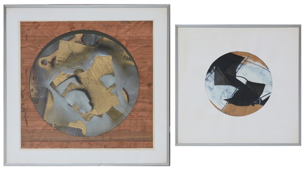 Lotto composto da due tecniche miste su carta, cm 48x48 e d cm 24, una firmata Schiavocampo e datata '68. In cornici