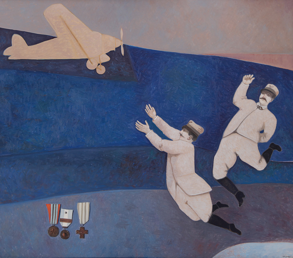 GIUSEPPE VIGNANI Algeri 26/05/1932 Aviatori olio su tela cm. 70x80, firma in basso a destra.