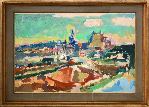 Dilvo Lotti "S. Miniato (Pisa)" 1967 olio su cartone telato cm 40x60 siglato e d