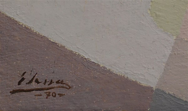 Firma indecifrata "Senza titolo" 1970 olio su tela cm 49x39 firmato e datato in