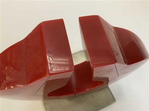 Edmondo Cirillo Scultura in resina rossa h cm 22 firmata in alto. (Difetti e res