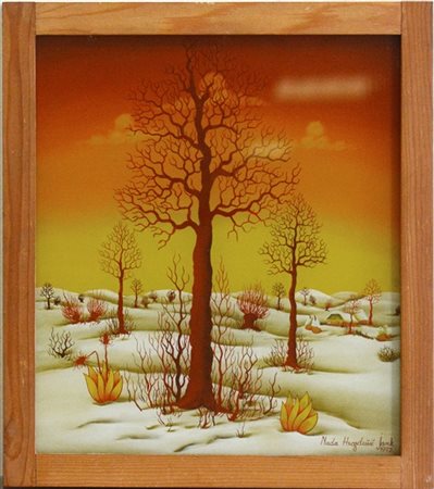 Nada Hegedusic-Jankovic "Senza titolo" 1972 olio su vetro cm 40x35 firmato e dat