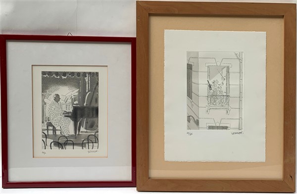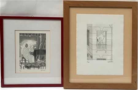 Jean Jacques Sempé due acqueforti raffiguranti musicisti misure diverse numerate