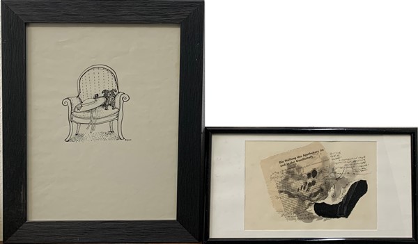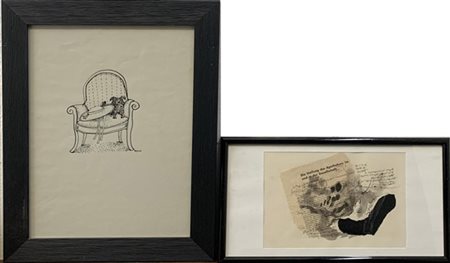 Lotto composto da una china su carta di Bruno Grassi e un collage su carta di Armin Mehling, di misure e soggetti diversi