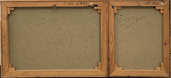 lotto composto da due dipinti ad olio su tela, cm 50x70 e 50x40, firmati e datati 70 e 74 al verso