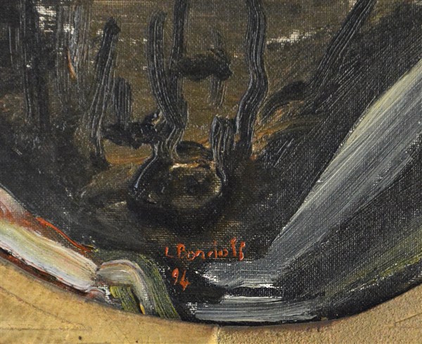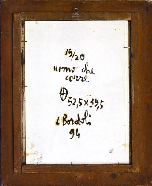 Bruno Bordoli "Uomo che corre" 1994 acrilico su cartone telato ovale cm 50x36 fi