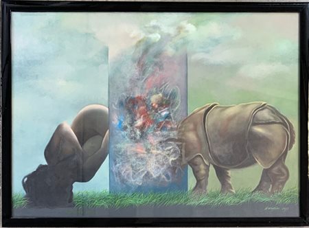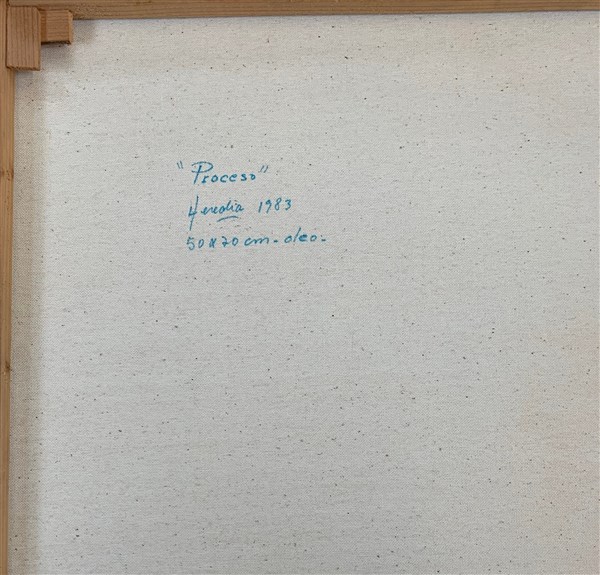 Raul Heredia "Proceso" 1983 olio su tela cm 50x69 firmato e datato in basso a de