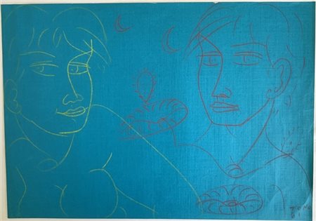 Tono Zancanaro "Circea" 1961 pastelli colorati su carta azzurra cm 35x50 firmato