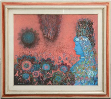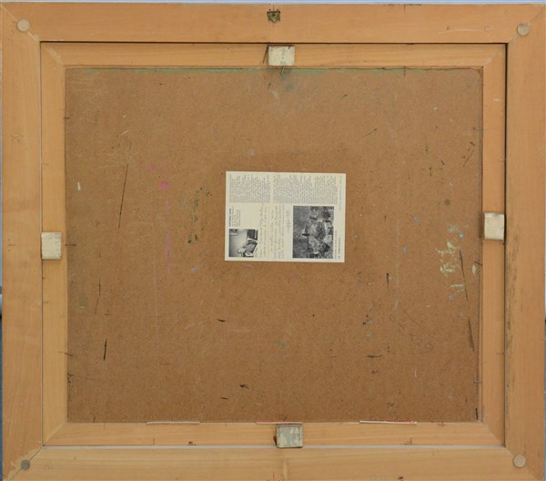 firmato in basso a sinistra; etichetta dell'artista al retro. In cornice (lievi difetti)