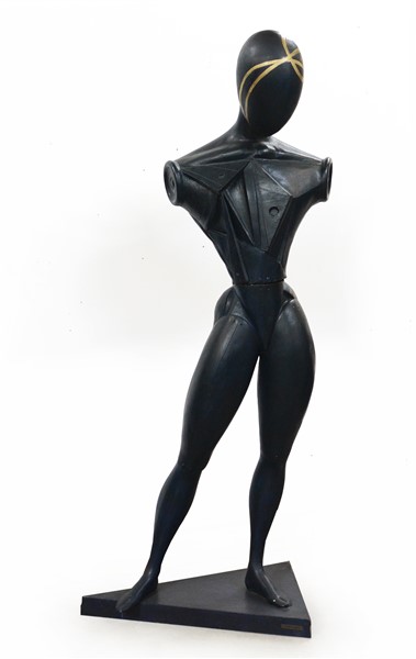 Marika Carniti Bollea "D'Apres De Chirico" scultura in resina dipinta su base i