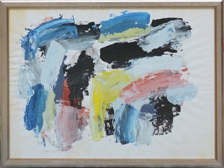 Firma indecifrata "Movimento lilla" 1962 tecnica mista su carta cm 46x60 firmato