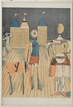 Franco Gentilini "Senza titolo" litografia a colori cm 69x48 numerata 66/148 e