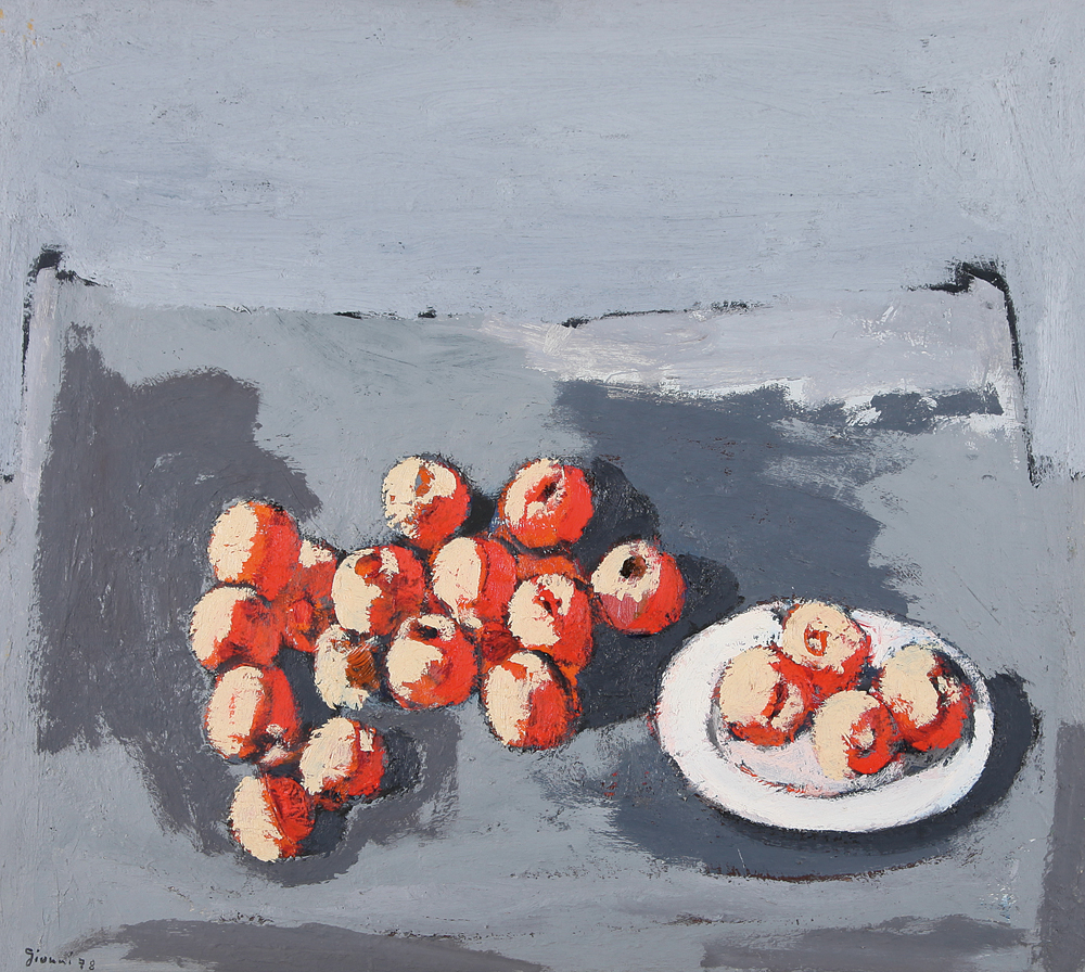 PIERO GIUNNI Villa Cortese (Mi) 08/12/1912 - 2001 Rosso e grigio, 1978 olio su tela cm. 80x90, firma e anno in basso a sinistra, firma, titolo, anno ed etichetta della Galleria Annunciata (MI) al retro.