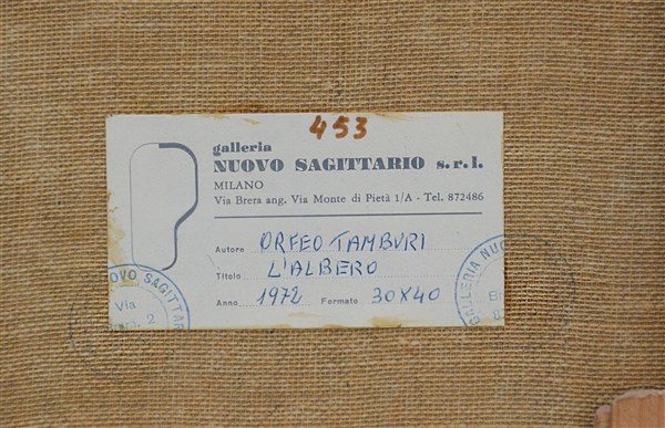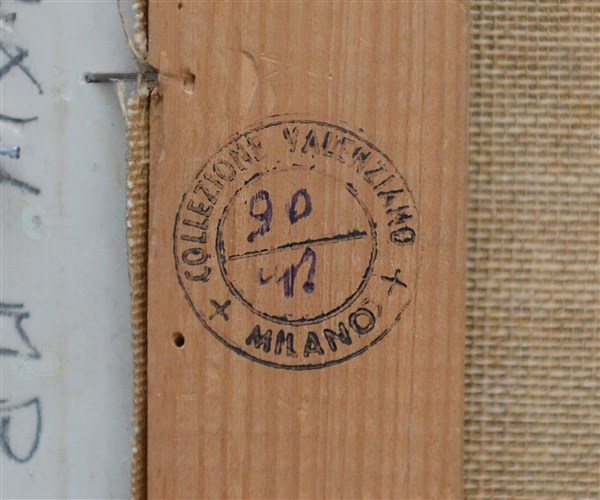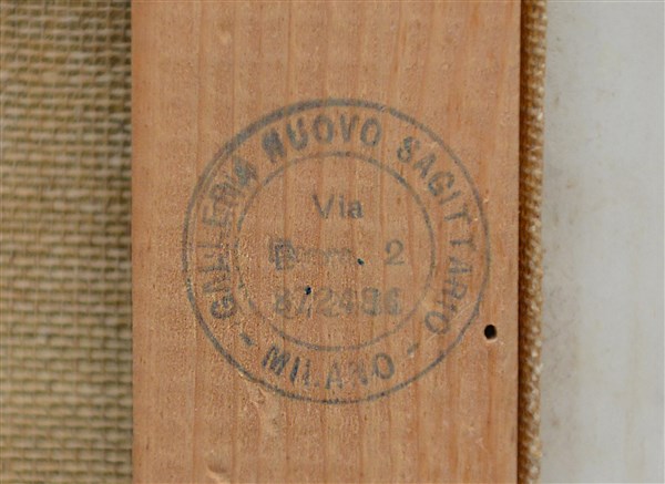 Opera accompagnata da certificato di autenticità su fotografia firmato dall'artista nel '73 con timbro della Galleria Nuovo Sagittario, Milano e parere verbale di autenticità rilasciato dalla Fondazione Orfeo Tamburi di Ancona