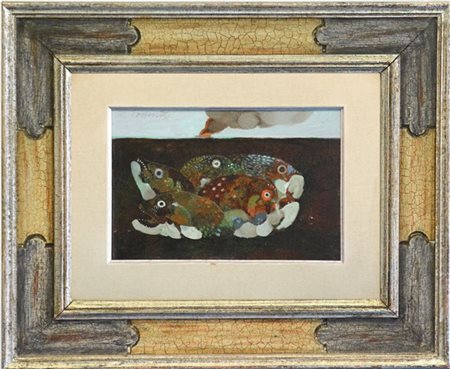 Antonio Possenti "Piccolo naufragio" olio su cartone telato cm 20x30 firmato in