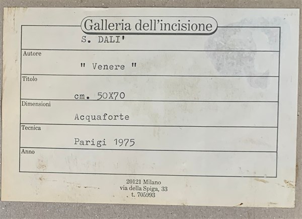 Salvador Dalì "Venere" 1975 acquaforte (lastra cm 58x38; foglio cm 75x55) numera