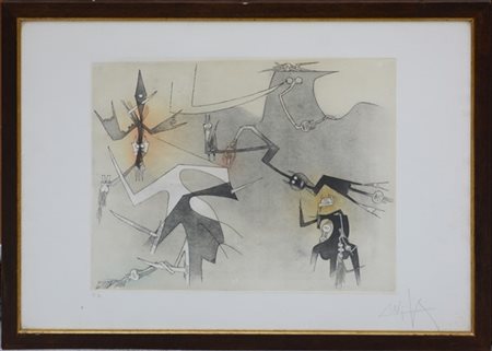 Wifredo Lam "Senza titolo" 1972 acquaforte e acquatinta a colori (lastra cm 37x4