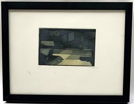 Karl Plattner "Senza titolo" 1981 acquaforte e acquatinta a colori (lastra cm 10