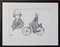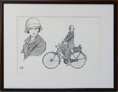 Guido Crepax "Valentina con gatto e bicicletta" china su carta cm 25x35 firmato