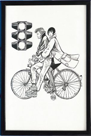 Guido Crepax "Valentina in bicicletta" china su carta cm 34x23 firmato in basso