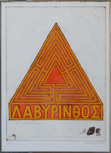 Joe Tilson "Fire Labyrinth" 1976 acquaforte e acquatinta a colori (lastra cm 68,