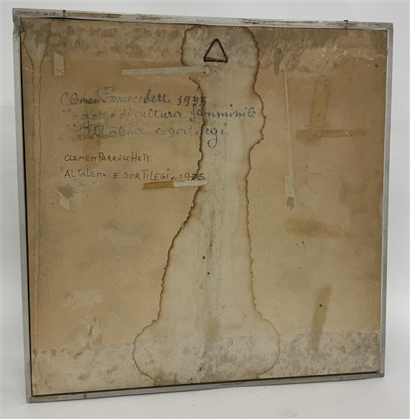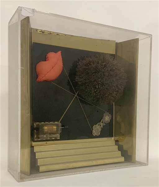 Clemen Parrocchetti "Altalena e sortilegi" 1975 assemblage in teca in plexiglass