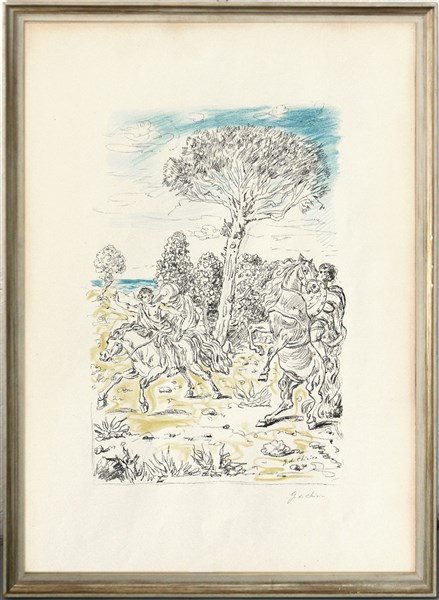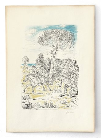Giorgio de Chirico "I monomachi" 1948 litografia a tre colori stampata su carta