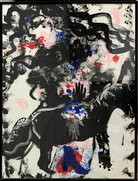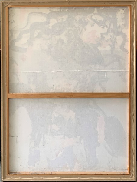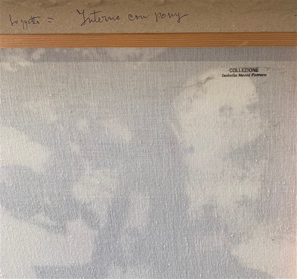 Giuseppe Desiato "Interno con pony" 1975 olio su seta cm 137x100 firmato e datat