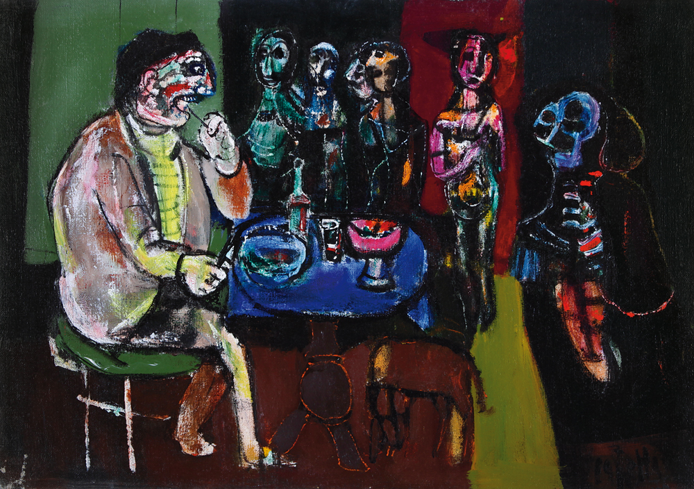 GUIDO PAJETTA Monza (Mi) 08/02/1898 - Milano 15/02/1987 Il pasto del padrone, 1976 acrilico su tela cm. 70x100, firma e anno in basso a destra, opera registrata presso l'Archivio Guido Pajetta al numero 1632, pubblicato su "Guido Pajetta, catalogo generale ragionato dei dipinti", volume secondo 1964 - 1987, a cura di Enrico Crispolti, Edizioni Mazzotta, pagina 1094, rep. numero 1976/45.